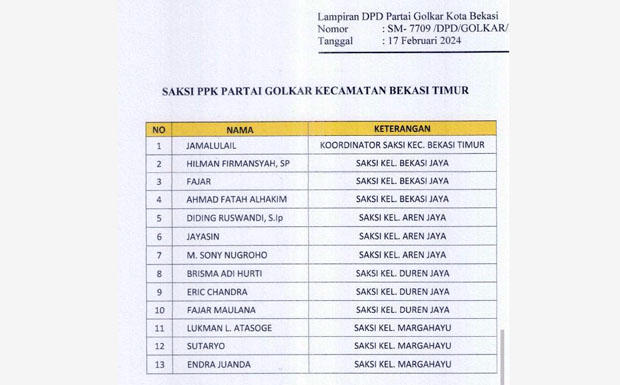 “Saya memiliki surat mandatnya. Nama seperti Ja dan Su menjadi saksi di Kecamatan Bekasi Timur. Sedangkan Ra menjadi saksi di Bekasi Selatan,” ungkap dia.