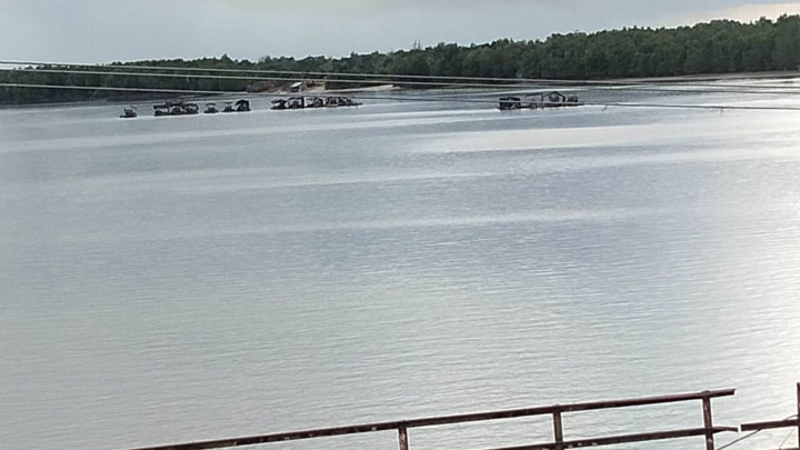 Hasil pengecekan, lokasi tersebut tidak termasuk dalam Wilayah Izin Usaha Pertambangan (WIUP) manapun yang berarti aktifitas penambangan timah menggunakan ponton apung tersebut tidak memiliki izin (ilegal).