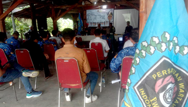 Materi Safari Jurnalistik PWI Kabupaten Bogor disampaikan langsung oleh Ketua PWI Kabupaten Bogor, H. Subagio, anggota PWI Kabupaten Bogor Untung, dan divisi hukum PWI Kabupaten Bogor, Dedi Blue.