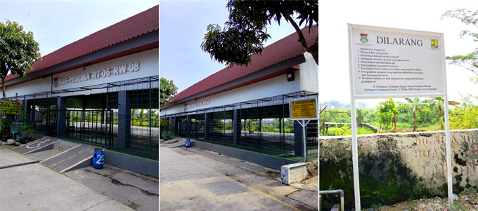 Ironisnya, di sebelah papan pengumuman itu, berdiri Bangunan Gedung Serbaguna Guna (GSG) pesona, tepat pada bibir kali.