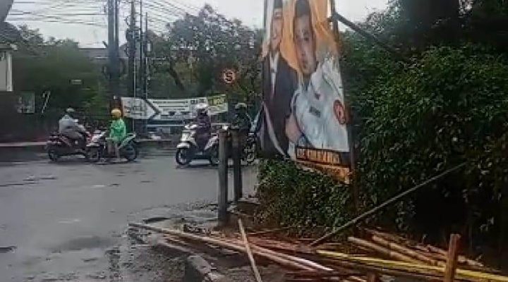 Sementara ketika ditemui wartawan di Lampu Merah Sukahati, Ali Masyhur sebagai Relawan Sahabat Jaro Ade sedang melihat rangka kayu bekas pemasangan baliho yang sudah berserakan.