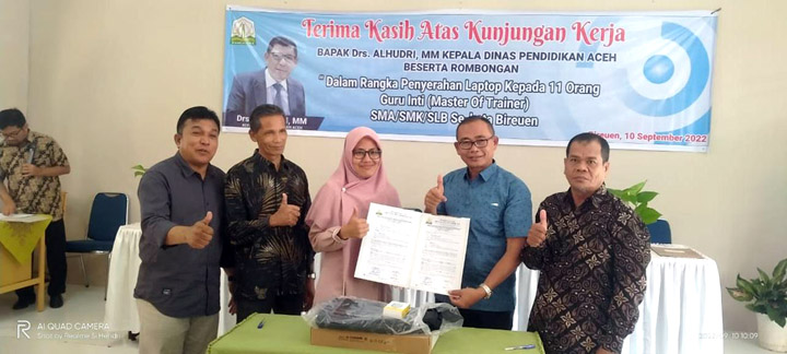 Ia menjelaskan, kedatangan Kadis Pendidikan Aceh guna memberikan 11 laptop edisi terbaru merk Acer dengan prosesor core i7 dan kapasitas RAM 8 GB kepada guru inti yang pada tahun 2021 mereka telah lulus ujian seleksi di Propinsi Aceh.