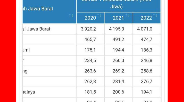 Adapun jumlah penduduk miskin di Jawa Barat pada 2021 yaitu mencapai 895,64 dan 941,86. BPS Rabu (11/1/2023) telah merangkum daftar 5 daerah yang ada di Jawa Barat dengan tingkat penduduk termiskin paling banyak pada tahun 2021- 2022.