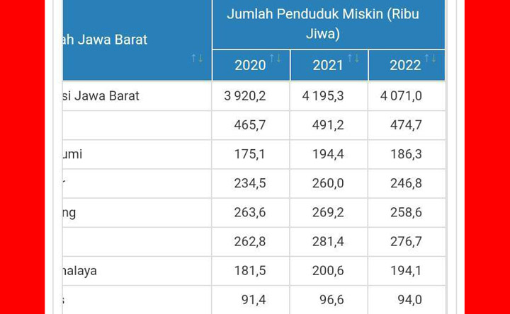 Hal ini diketahui setelah Badan Pusat Statistik Provinsi Jawa Barat 16 Januari 2023 lalu mengeluarkan rilis resmi data terbaru yang mana dalam data yang dikeluarkan tersebut kabupaten Bogor menjadi daerah pertama yang memiliki tingkat penduduk termiskin di Jawa Barat.