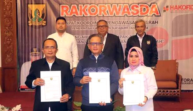 SUKABUMI, INDONEWS | Bupati Sukabumi H. Marwan Hamami membuka rapat koordinasi (rakor) pengawasan daerah tingkat Kabupaten Sukabumi tahun 2024 di Pangrango Resort, Rabu, 4 Desember 2024.