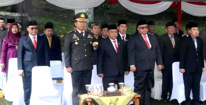 Bertindak selaku Inspektur Upacara Dandim 0622 Letkol Kav Andhi Ardana Valeriandra, bertindak selaku dan Ketua DPRD Kabupaten Sukabumi Budi Azhar Mutawali membacakan pesan pesan Pahlawan.