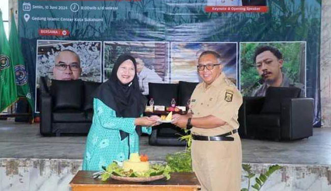 SUKABUMI, INDONEWS | Bupati Sukabumi H. Marwam Hamami menjadi pembicara dalam seminar nasional yang digagas BEM Fakultas Pertanian Universitas Muhammadiyah Sukabumi (UMMI) di Gedung Islamic Center Kota Sukabumi, Senin (10/6).