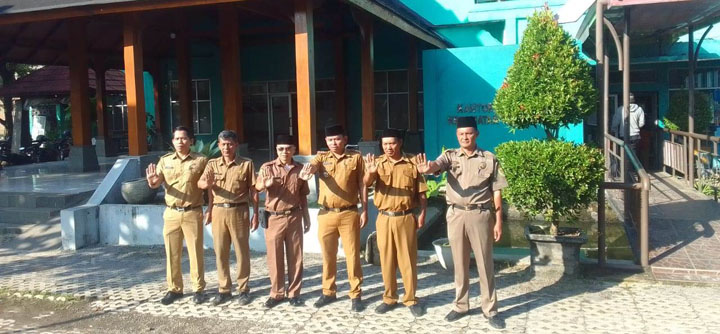Seluruh jajaran kecamatan termasuk sekretaris camat, para kasi hadir untuk mengikuti apel.