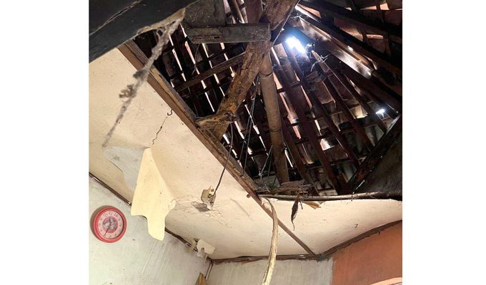 Kedua warga tersebut, Bram dan Ajuh, mengeluhkan kondisi rumah yang sudah tidak layak huni karena banyak bagian rusak dan bocor saat hujan turun.