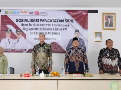SUKABUMI, INDONEWS | Pemerintah Kota Sukabumi terus memperkuat pelayanan administrasi kependudukan (adminduk) melalui kegiatan Sosialisasi Pencatatan Sipil untuk Tertib Administrasi Kependudukan bagi aparatur ...