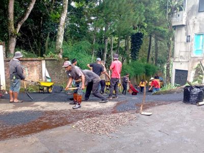 Lewat Bankeu, Pemdes Sukakarya Hotmix Jalan Lingkungan