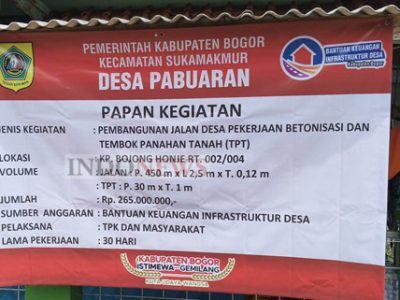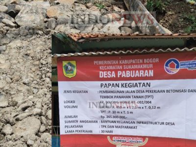 BOGOR, INDONEWS | Tim Pelaksana Kegiatan (TPK) Desa Pabuaran, Kecamatan Sukamakmur, Kabupaten Bogor membenarkan pembangunan Infrastruktur di Kampung Bojong Honje tidak melibatkan warga ...