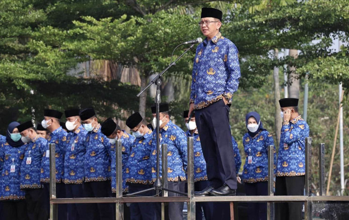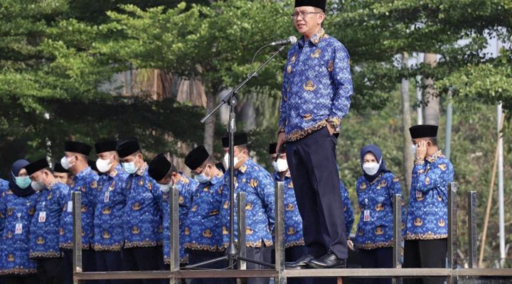 BEKASI, INDONEWS – Pj Bupati Bekasi, Dani Ramdan memimpin upacara apel pagi Korps Pegawai Republik Indonesia (KORPRI) yang diikuti seluruh ASN di lingkungan Pemkab Bekasi, di Plaza Pemda, Cikarang Pusat, pada Senin (18/07/2022).