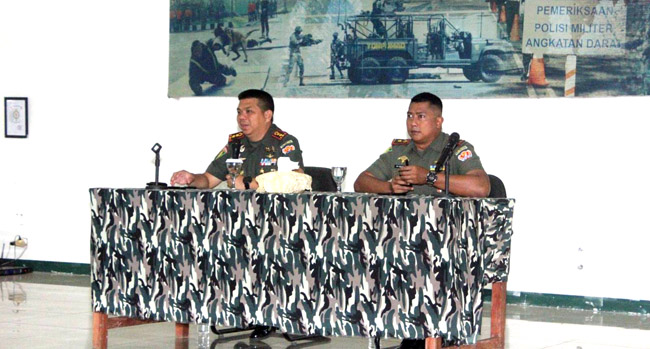 BOGOR, INDONEWS | Danyonpomad Puspomad, Letkol. Cpm. Hanri Wira Kusuma, S.H., M.han didampingi Wadanyonpomad Mayor Cpm Maurajanoor G. Nasution memberikan jam komandan kepada seluruh Prajurit Yonpomad, di Aula Soetojo Siswomihardjo Yonpomad, Jonggol, Bogor, Selasa (21/5).