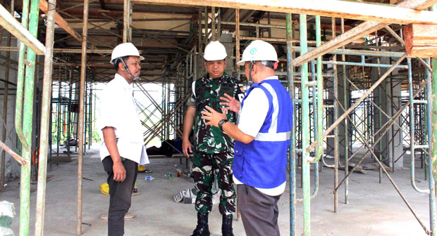 Danyonpomad didampingi oleh Managemen Konsultasi Endang Somantri dan Manager Proyek Hariyadi mengecek proses pembangunan rumah susun yang rencana dalam waktu dekat akan dilaksanakan Topping Off.