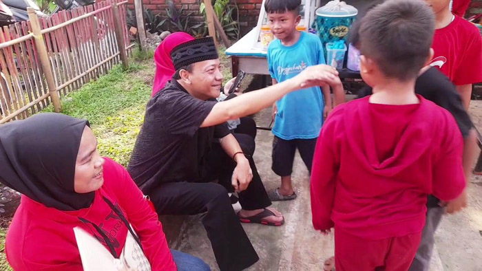 BOGOR, INDONEWS | Calon Bupati Bogor nomor urut 2, H.R Bayu Syahjohan terlihat begitu akrab dengan anak-anak di Kp. Kemang, RT 01, RW 10, Desa Sukaluyu, Kecamatan Tamansari, Kabupaten Bogor, Senin (30/9).