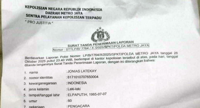 BEKASI, INDONEWS – Diduga melakukan penipuan dan penggelepan uang kliennya, oknum yang mengaku sebagai lawyer berinisial TR dilaporkan ke Polda Metro Jaya, Selasa (28/10/2025).