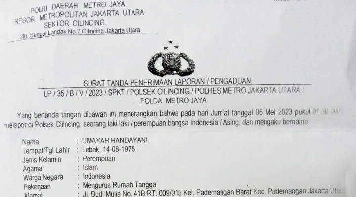 JAKARTA, INDONEWS – Salah satu wartawan media online, Umayah mengaku menjadi korban tindak kekerasan pada Jumat (5/5/2023), dan melaporkan kejadian tersebut ke Polsek Cilincing.