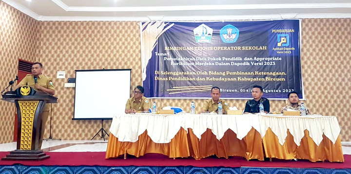 BIREUEN, INDONEWS – Dinas Pendidikan dan Kebudayaan (Disdikbud) Kabupaten Bireuen melaksanakan bimbingan teknis (bimtek) bagi operator sekolah mulai dari jenjang PAUD, SD dan SMP se Kabupaten Bireuen, di Aula Wisma Bireuen Jaya, Senin (1/8/2022).