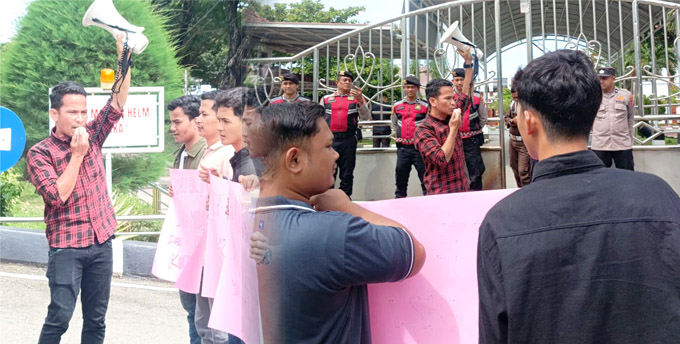 BANDA ACEH, INDONEWS — Dewan Pimpinan Pusat Barisan Intelektual Muda Tanah Rencong (DPP BEM-TR) melakukan aksi unjuk rasa di Kejaksaan Tinggi Aceh terkait penolakan keras terhadap jaksa yang bermasalah di Sumatera Utara di pindah ke Aceh, Rabu, 22 Oktober 2025.