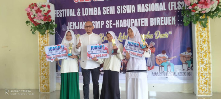 Untuk cabang lomba kreativitas tarim juara 1 diraih SMPN 1 Bireuen, juara 2 diraih SMPN 3 Bireuen, juara 3 diraih SMPN 2 Bireuen. Untuk Lomba Musik Tradisional, juara 1 diraih SMPN 2 Bireuen, juara 2 diraih SMPN 1 Peusangan dan juara 3 diraih SMPN 3 Bireuen.