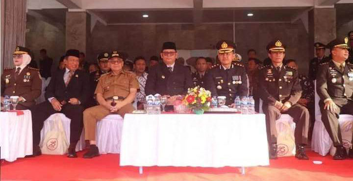 SUKABUMI, INDONEWS | Wakil Bupati Sukabumi H. Iyos Somantri mewakili Bupati menghadiri acara upacara HUT Bhayangkara ke 78 Tingkat Polres Sukabumi Kota, di Lapang Merdeka Kota Sukabumi, Senin (1/7).