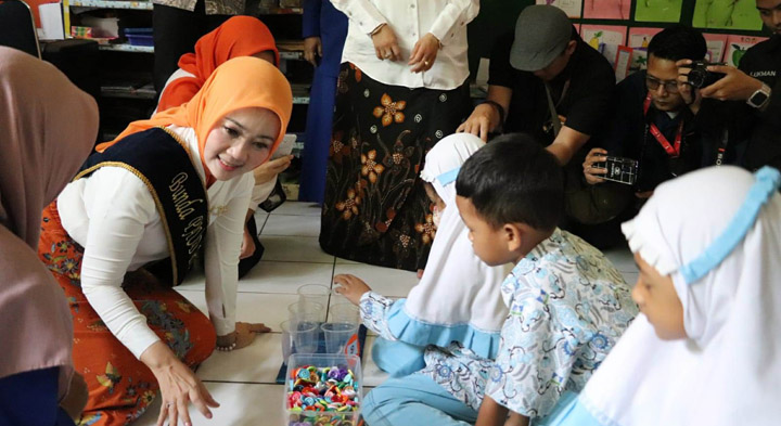 BEKASI, INDONEWS – Ketua TP PKK Provinsi Jawa Barat, selaku Bunda PAUD Jawa Barat, Atalia Praratya Ridwan Kamil didampingi Pj Ketua TP PKK, Bunda PAUD Kabupaten Bekasi, Ria Sabaria Dani Ramdan bersama rombongan Siaran Keliling (Sarling) Jawa Barat, mengunjungi Sekolah PAUD Yayasan Al-Muslim yang berada di Desa Tambun Kecamatan Tambun Selatan, Kamis (15/06/2023).