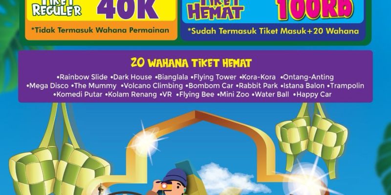 Adapun, kata Panji, 20 Wahana Pilihan Tiket Hemat adalah Rainbow Slide, Dark House, Bianglala, Flying Tower, Kora-Kora, Ontang-Anting, Mega Disco, The Mummy, Volcano Climbing, Bombom Car, Rabbit Park, Istana Balon, Trampolin, Komedi Putar, Kolam Renang, VR, Flying Bee, Mini Zoo, Water Ball, dan Happy Car.