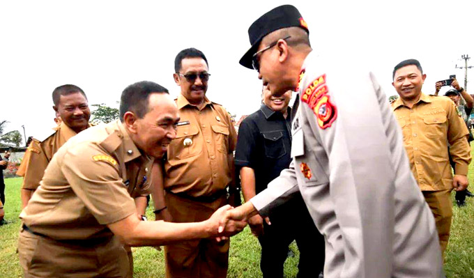 SUKABUMI, INDONEWS — Bupati Sukabumi, H. Asep Japar beserta Forkopimda Kabupaten Sukabumi, Wakil Bupati H. Andreas dan Sekda H. Ade Suryaman, SH.,MM., mendampingi Kapolda Jawa Barat Irjen Pol. Dr. Rudi Setiawan, S.Ik.,SH.,MH ke Lapang Cisolok, Senin (8/12/2025).
