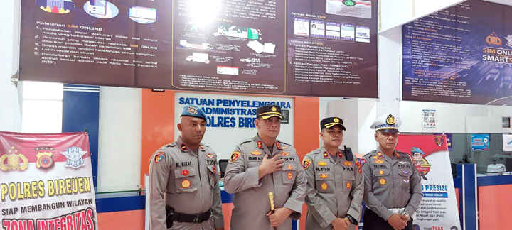 BIREUEN, INDONEWS – Kapolres Bireuen, AKBP Mike Hardy Wirapraja mengimbau masyarakat untuk terus melakukan pengurusan SIM, dikarenakan tak ada pungli dalam pelayanan pembuatan SIM.