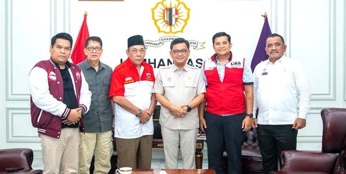 JAKARTA, INDONEWS — Wakil Presiden DPP LSM LIRA, Imam Bogie Yudhaswara beserta delegasi Sekjend Adam Irham dan Menteri LIRA Zulkarnain Idris dan Rusdi Ali Hanafiah berkunjung ke Kantor Lemhanas RI, Kamis (16/10/2025).