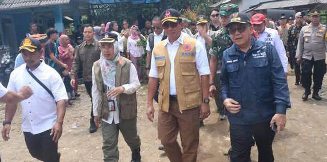 SUKABUMI, INDONEWS | Wakil Bupati Sukabumi H. Iyos Somantri mendampingi Kunjungan Kerja Kepala Badan Nasional Penanggulangan Bencana (BNPB) Letjen TNI Suharyanto dalam rangka Monitoring Pembangunan Hunian Tetap untuk Korban Bencana di wilayah Desa Wanajaya, Kecamatan Cisolok, Rabu (08/1/25).