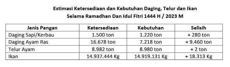 Ketersediaan stok telur juga lebih dari cukup dan dapat di penuhi dari produksi lokal. Besaran ketersediaan dan kebutuhan pangan asal hewan dan ikan untuk Idul Fitri 1444 H di Kabupaten Bogor secara terperinci dapat dilihat pada tabel berikut :