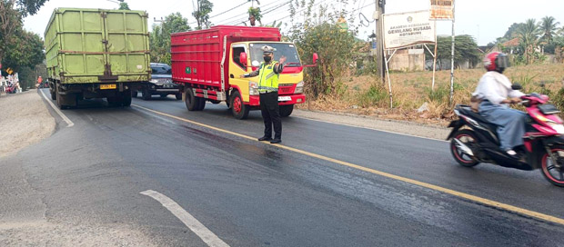 Sesekali dirinya nampak melambaikan tangan sembari berkata “Terus pak, terus bu. Hati hati jangan kebut-kebutan”.