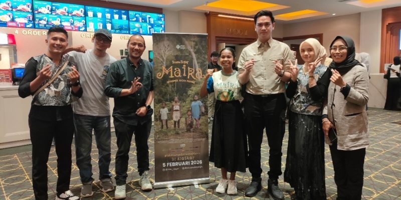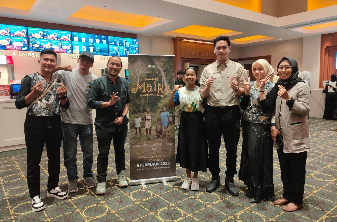 SUMEDANG, INDONEWS | Kolaborasi lintas sektor ditunjukkan dalam kegiatan Special Screening dan nonton bareng film Maira: Whisper from Papua yang digelar di XXI Jatos, Kamis (5/2/2026). Kegiatan ini merupakan hasil sinergi kolektif kreatif Aksa Bumi Langit bersama Jatinangor Creative Community (JCC).