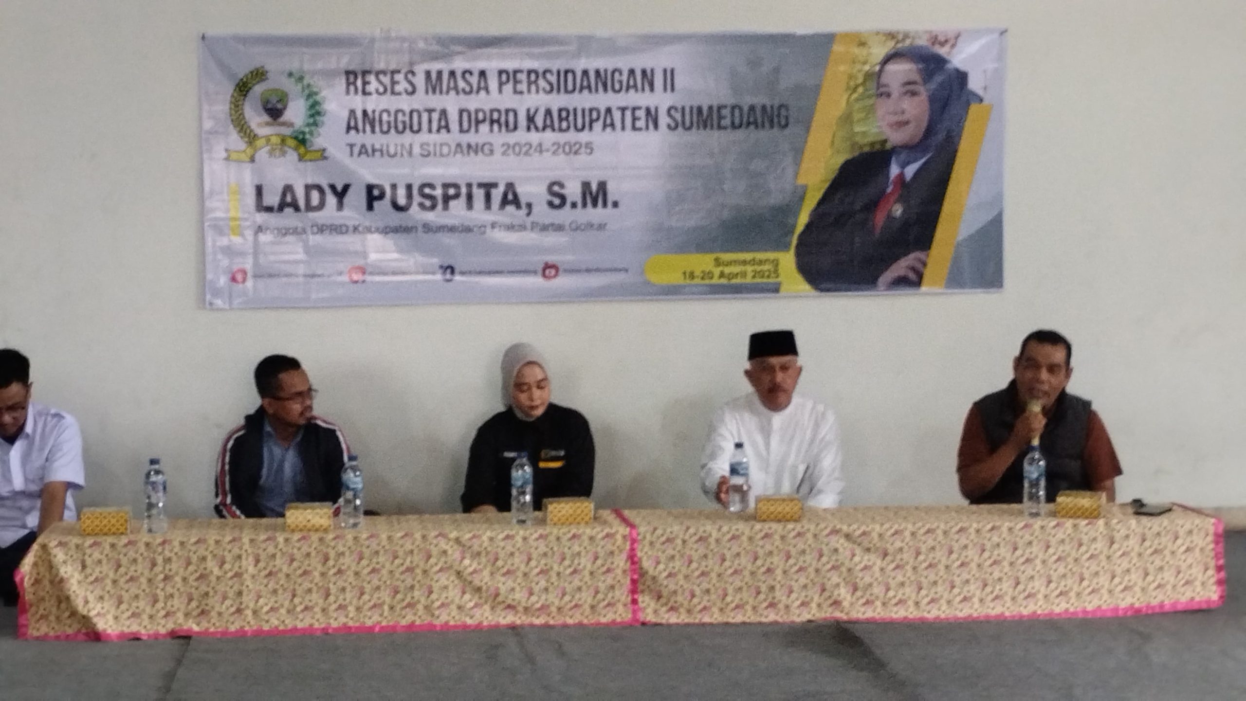 JATINANGOR, INDONEWS.COM | Anggota Dewan Perwakilan Rakyat Daerah (DPRD) Kabupaten Sumedang dari Fraksi Partai Golkar, Lady Puspita, menggelar kegiatan reses Masa Persidangan II di Desa Hegarmanah, Kecamatan Jatinangor, pada Jumat (18/4/2025).