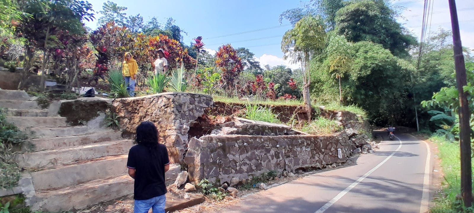 “Kebetulan tadi saya lewat dari arah Cimanggung menuju Jatinangor setelah melihat kondisi TPT yang ambruk ini, hampir saja terjadi kecelakaan karena ketika mobil saya lewat ada pengendara motor sebelah kiri dan sebelah kanan ada pejalan kaki yang cukup banyak. Sedangkan sebelah kirinya itu jurang yang cukup dalam juga sekitar ketinggian 4 sampai 5 meter. Jadi kalau ini dibiarkan takut akan menelan korban jiwa. Belum lagi dibawah TPT yang roboh ada rumah warga,” ujarnya.