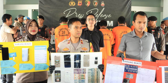 ‘Para pelaku diduga melanggar Pasal 45 ayat (3) Jo Pasal 27 ayat (2) UU ITE Nomor 1 Tahun 2024 dengan ancaman pidana hingga 10 tahun, serta Pasal 303 dan/atau 303 bis KUHP dengan ancaman pidana maksimal 10 tahun,” katanya, dalam konferensi pers di Mako Polres Bogor, Rabu (6/11).