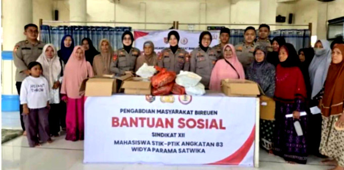 BIREUEN, INDONEWS — Mahasiswa PTIK Lemdiklat Polri Angkatan ke-83/WPS melaksanakan kegiatan pembinaan rohani dan penyaluran bantuan sosial kepada masyarakat terdampak banjir di Kecamatan Peusangan, Kabupaten Bireuen.