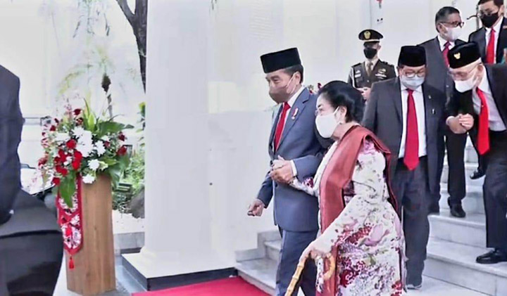 “Saya dan Mas Pramono Anung menyaksikan sebelum dan sesudah pelantikan Dewan Kehormatan dan Pengurus BPIP yang berbicara akrab penuh kegembiraan. Bahkan setelah acara pelantikan, pak Jokowi dan bu Mega berbicara empat mata, dan pada saat menuju mobil pak Jokowi menggandeng tangan bu Mega,” ujar Hasto, dalam siaran persnya, Rabu (8/6/2022).