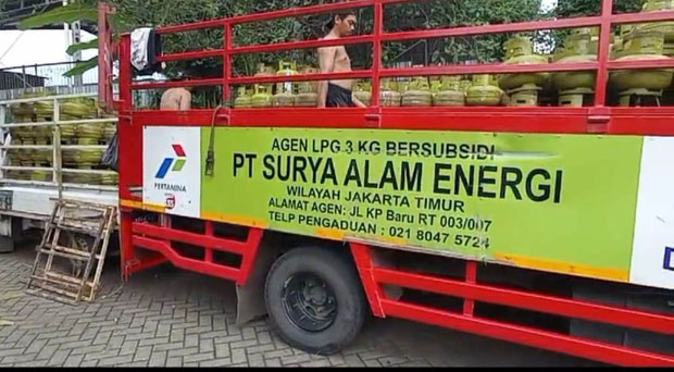 BOGOR, INDONEWS | Dugaan penyelewengan tabung gas elpiji 3 kilo gram bersubsidi antar wilayah mulai terbuka. Hal tersebut diketahui dari mobil resmi pertamina nomor polisi B 9391 PYY bertuliskan PT. Surya Alam Energi, dengan alamat agen di Jalan Baru, RT 03, RW 07, Jakarta Timur, membongkar muatan di Kabupaten Bogor, Jawa Barat.