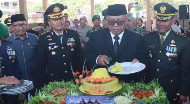 SUKABUMI, INDONEWS – Bupati Sukabumi, H. Marwan Hamami, Sekretaris Daerah Kabupaten beserta jajaran Forkopimda Kabupaten Sukabumi menghadiri upacara Peringatan Hari Ulang Tahun Tentara Nasional Indonesia (TNI) ke 78 Tingkat dengan tema “TNI Patriot NKRI, Pengawal Demokrasi Untuk Indonesia Maju”, di Lapangan Cangehgar Palabuhanratu, Kamis (5/10/23).