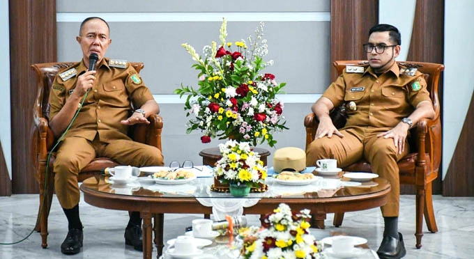 SUKABUMI, INDONEWS | Wali Kota Sukabumi, H. Ayep Zaki, didampingi Wakil Wali Kota Sukabumi, Bobby Maulana menerima audiensi dari jajaran Persatuan Insinyur Indonesia (PII) di Ruang Utama Balai Kota Sukabumi, Senin (14/4) pagi.