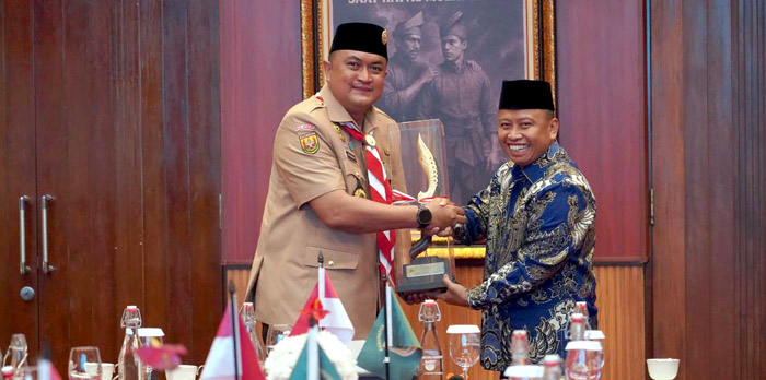 BOGOR, INDONEWS | Dalam ranga memperkuat kerja sama dan sinergitas, Bupati Bogor, Rudy Susmanto bersama Wali Kota Depok, Supian Suri menandatangani prasasti peresmian Pasar Rakyat Citayam, di Ruang Soekarno Hatta, Pendopo Bupati Bogor, Kamis (21/8/2025).