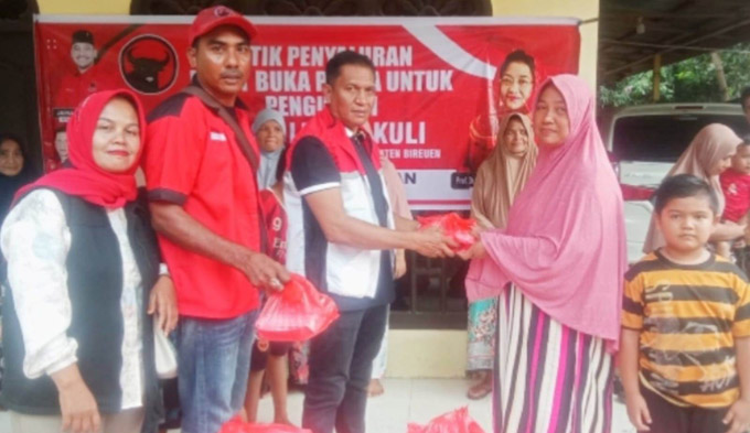 Sekretaris DPC PDIP Kabupaten Bireuen, Mawardi Hs, juga terlihat menyerahkan secara langsung bantuan paket berbuka kepada penyintas banjir yang menempati hunian darurat di Gampong Pante Lhong, Kecamatan Peusangan.