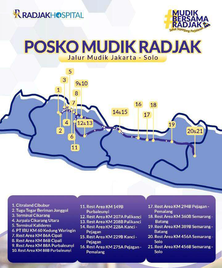BOGOR, INDONEWS – Radjak Hospital membuka puluhan posko kesehatan di sejumlah ruas jalan tol dan jalur padat pemudik.