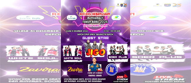 DEPOK, INDONEWS | Malam pergantian tahun 2024/2025 bakal semarak di Depok Open Space (DOS). Acara bertajuk Refleksi Kebangsaan ini menampilkan beragam kegiatan, mulai dari renungan dan muhasabah di akhir acara serta pesta kembang api.