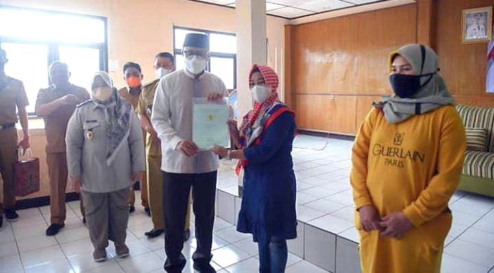 SUKABUMI, INDONEWS – Pemerintah Kota (Pemkot) Sukabumi melalui Badan Pertanahan Nasional Kota Sukabumi menyerahkan sertifikat tanah untuk rakyat, pada program Pendaftaran Tanah Sistematis Lengkap (PTSL) tahun 2019-2020.