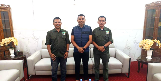 BLANGPIDIE, INDONEWS — Penasehat DPC Asosiasi Pertambangan Rakyat Indonesia (APRI) Aceh Selatan, Hanzirwansyah bersama Ketua APRI Aceh Selatan Delky Nofrizal Qutni, melakukan kunjungan kerja ke Bupati Aceh Barat Daya (Abdya) Dr. Safaruddin, Jumat 17 Oktober 2025.
