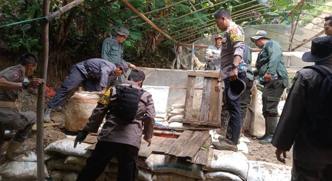 Selain itu, pihaknya juga melakukan pemasangan plang di dua titik dan police line di sekitar lubang juga melakukan pembongkaran tempat yang jadi sarana para penambang.